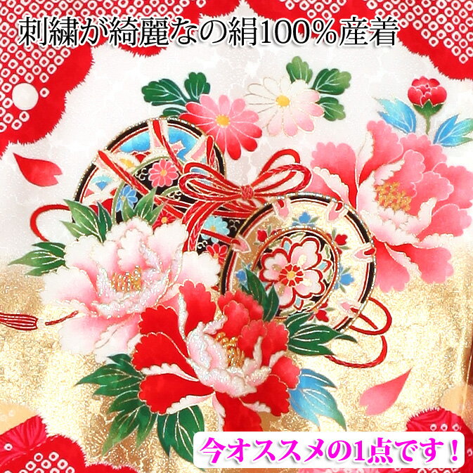 ベビー帽子セット無料レンタル付!(よだれかけ、帽子、お守り) 【送料無料(一部離島を除く)】女の子産着(祝着)レンタル [産着品質]■表地:正絹 ■裏地:合成繊維 [産着レンタルセット内容] 産着、ベビー帽子セット(よだれかけ、帽子、お守り) 、お祝いのプレゼント、着せ方説明書 [産着の着せ方] お祝い着をかける時は 絵柄がよく見える様に広げ抱いた子供の体を覆う様に掛け 産着の付紐を肩から背中にまわし背中で蝶結びにします。