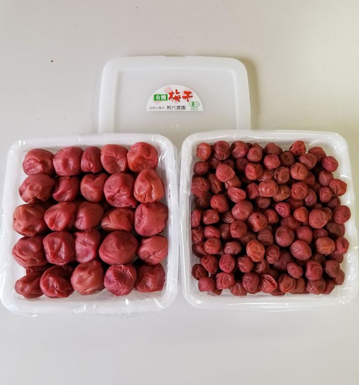 【ふるさと納税】有機栽培 南高しそ漬け梅干1kg、小梅しそ漬け梅干1kg