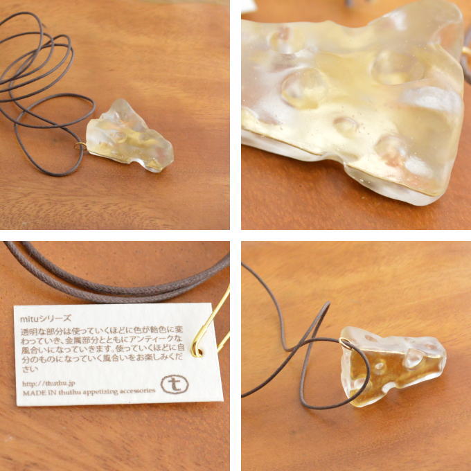DETAIL サイズ チーズ 3.7×2.8cm コットン紐 80cm (好きな長さに調節可) 素材 : 真鍮 樹脂 日本製 ご注意下さい 店頭でも販売しておりますので、タイミングによっては ご注文をキャンセルさせて いただく場合がございます。